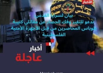 أخبار عالميه سرايا القدس تدعو للنفير العام وفك الحصار عن مقاتلي كتيبة طوباس المحاصرين من قِبل السلطة الفلسطينيةby karimelgammal أكتوبر 12, 2024 0 سرايا القدس تدعو لفك حصار مقاتليها في طوباس من أمن السلطة أعلنت سرايا القدس، الجناح العسكري لحركة الجهاد الإسلامي، بأن ... Read moreDetails